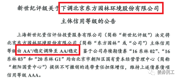 原標題: 東方園林評級被下調至AA!