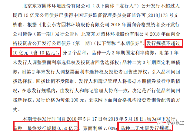 一是2018年5月的5000萬元債券發行事件:東方園林公告發行規模不超過10億元,但是最終發行了5000萬元,東方園林一時成為了市場的焦點,引爆了東方園林的股票質押危機。