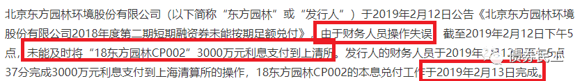二是2019年2月12日的18東方園林CP002技術性違約事件,再次將公司置入了風口浪尖。公司的經營和發展受到了多方質疑,陷入了發展危機。