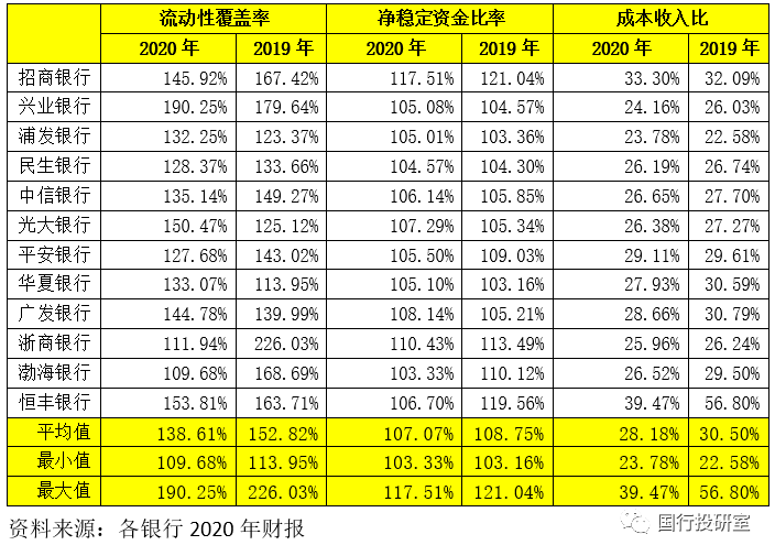 1、2020年,12家股份行的流動性覆蓋率、凈穩定資金比例平均分別為138.61%和107.07%,整體上看較2019年有一定下降。