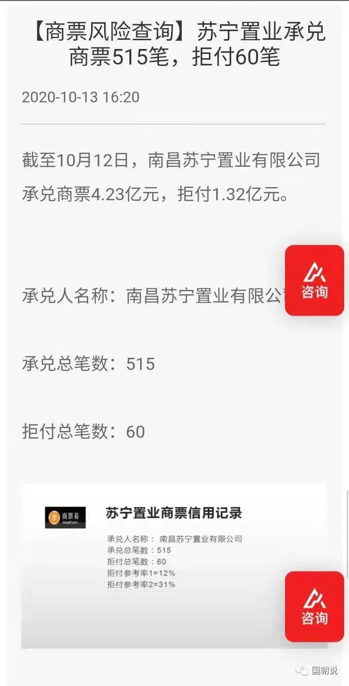 雖然,蘇寧置業很快補繳了稅款,不過這個也給我們提了個醒。2020年下半年,市場上就陸續傳出蘇寧置業子公司的商票發生逾期的事件。