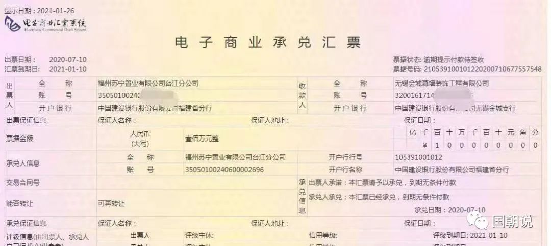 從上面三張商票可以看出,到已經到期超過半個月還沒有付款,如果蘇寧自己開出的商票都不兌付,這會對公司整體信譽造成很大的影響。
