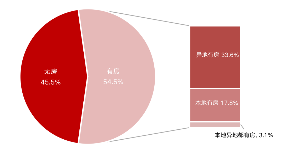 八城調研數據顯示,有房租房人群占本地租房客群的54.5%,較無房租房客群占比更大。其中,多為異地有房,占比達33.6%,而本地有房客群占比也達17.8%,可見,有房仍租房是市場的常態,并非有房人群就不存在租房需求。