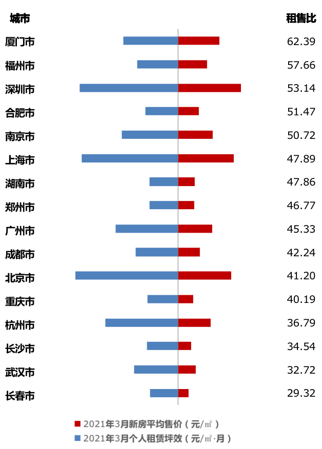 近年來,一、二線城市商品房價格一直維持在較高水平,而租金的漲幅遠低于房價的漲幅,一二線城市的租售比遠低于合理的租售比區間水平,買房門檻日益攀升。在房價高企的當下,租賃需求愈發旺盛。