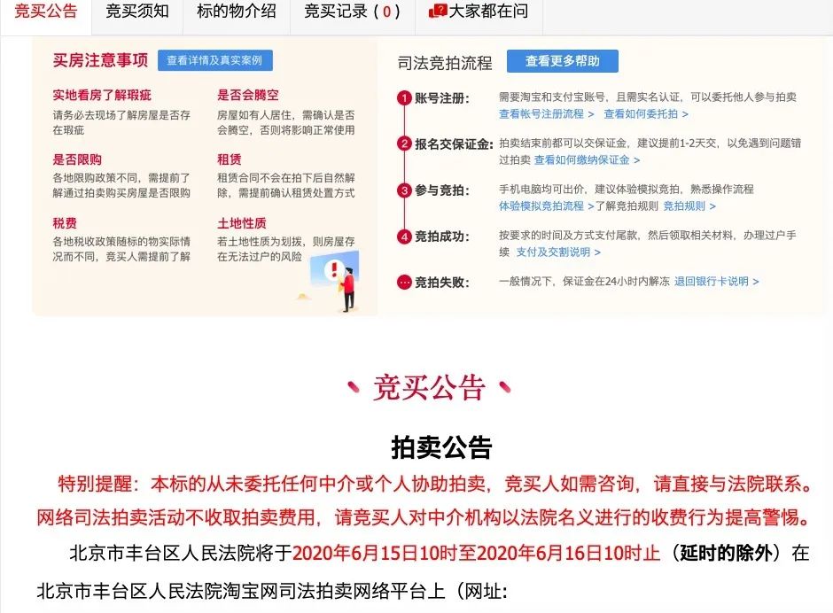 競買公告:這里主要介紹注意法院是否會負責騰空、有無租賃、土地性質的問題;還有競拍流程可以參與“模擬競拍”來先嘗試;