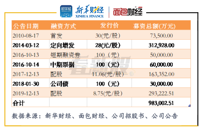 天齊鋰業自2010年首發上市以來,通過定增、發債、配股等直接融資形式,合計融資超98億元。僅就股權融資來說,公司通過首發、配股以及增發方式,合計募集資金約84.3億元。