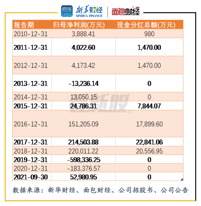 圖2:2010至2021年前三季度天齊鋰業歸母凈利潤、現金分紅