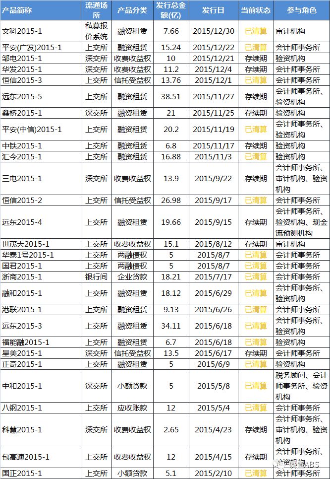 2015年全年,瑞華會計事務(wù)所一共參與了ABS項目28單,規(guī)模388.41億元,其中17單已到期清算。