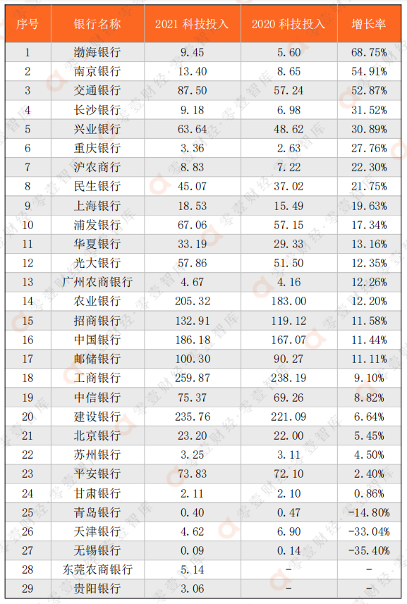 原標題: 29家上市銀行科技投入大比拼