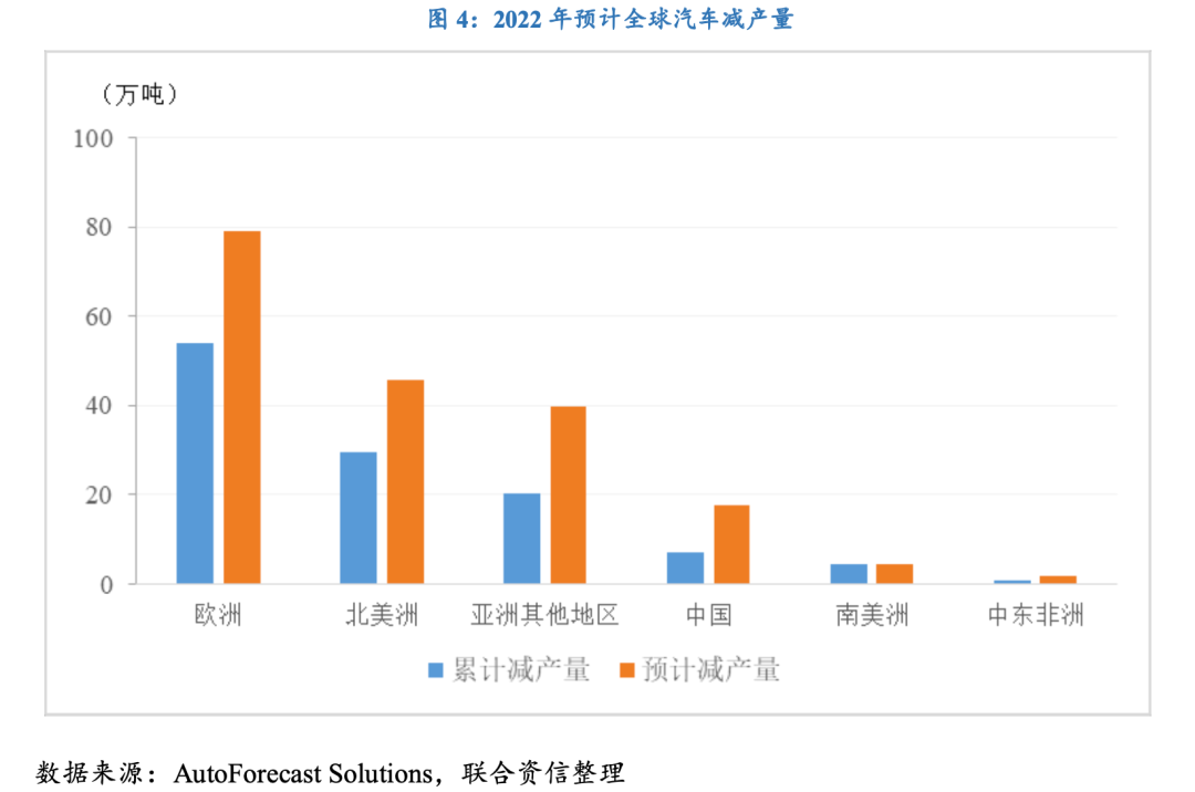 俄羅斯和烏克蘭是全球重要的有色金屬以及稀有氣體的出口國,俄烏沖突導致相關產品價格上漲,并傳導至鋰電池、芯片等多個中游產業供應短缺,進而加劇下游汽車產業的產能受限問題