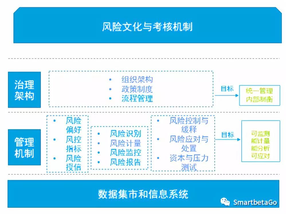 管理機(jī)制通過十個(gè)模塊的合力,達(dá)到監(jiān)管要求的可監(jiān)測、能計(jì)量、能分析、可應(yīng)對,而其中核心的是通過立體化內(nèi)評體系提升內(nèi)評的風(fēng)險(xiǎn)識別和風(fēng)險(xiǎn)計(jì)量能力。