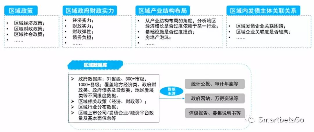 區(qū)域維度看,可以通過整理區(qū)域政策、區(qū)域政府財(cái)政實(shí)力情況、區(qū)域產(chǎn)業(yè)結(jié)構(gòu)分布、區(qū)域內(nèi)發(fā)債主體關(guān)系,搭建自己的區(qū)域數(shù)據(jù)庫,如下圖六: