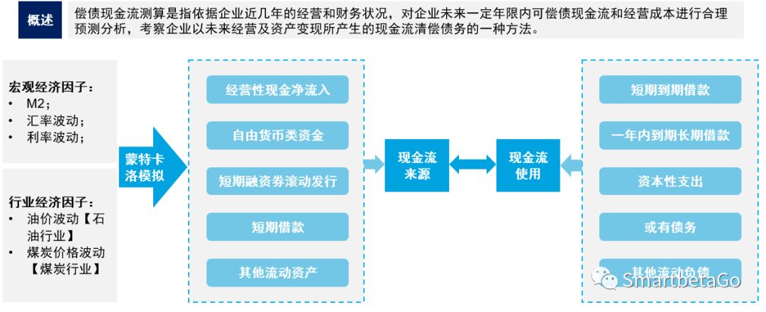 (1)風(fēng)險(xiǎn)計(jì)量針對信用品種的短期(1年以內(nèi))流動性情況,可以設(shè)計(jì)基于償債現(xiàn)金流情況的流動性評價(jià)模型(除傳統(tǒng)的線性模型外,建議考慮基于蒙特卡洛模擬的現(xiàn)金流量風(fēng)險(xiǎn)值(Cash Flow at Risk—CFaR)。