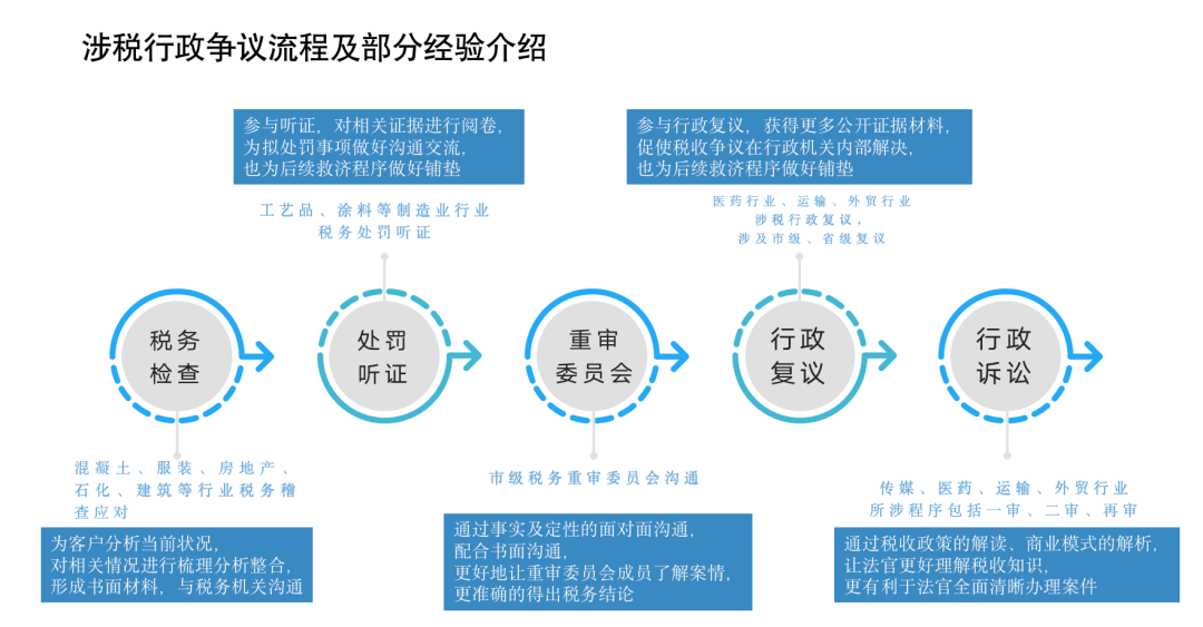 涉稅非訴業務主要涉及咨詢審核業務,企業專項涉稅服務、自然人專項涉稅服務以及國際稅收業務;涉稅爭議業務主要涉及涉稅行政救濟、刑事辯護以及民事涉稅爭議解決。