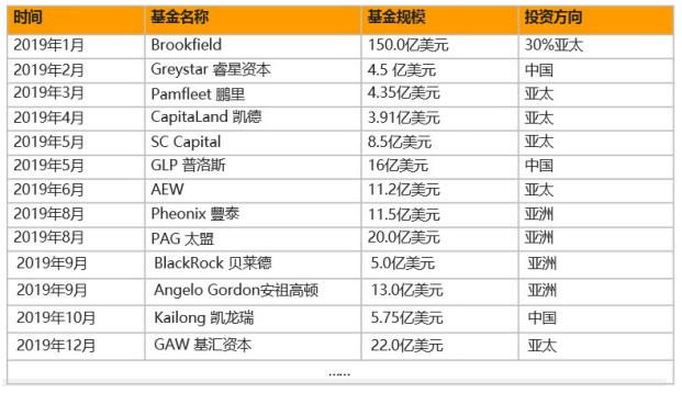2019年外資亞太地區(qū)募資表