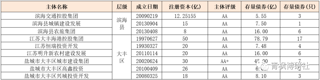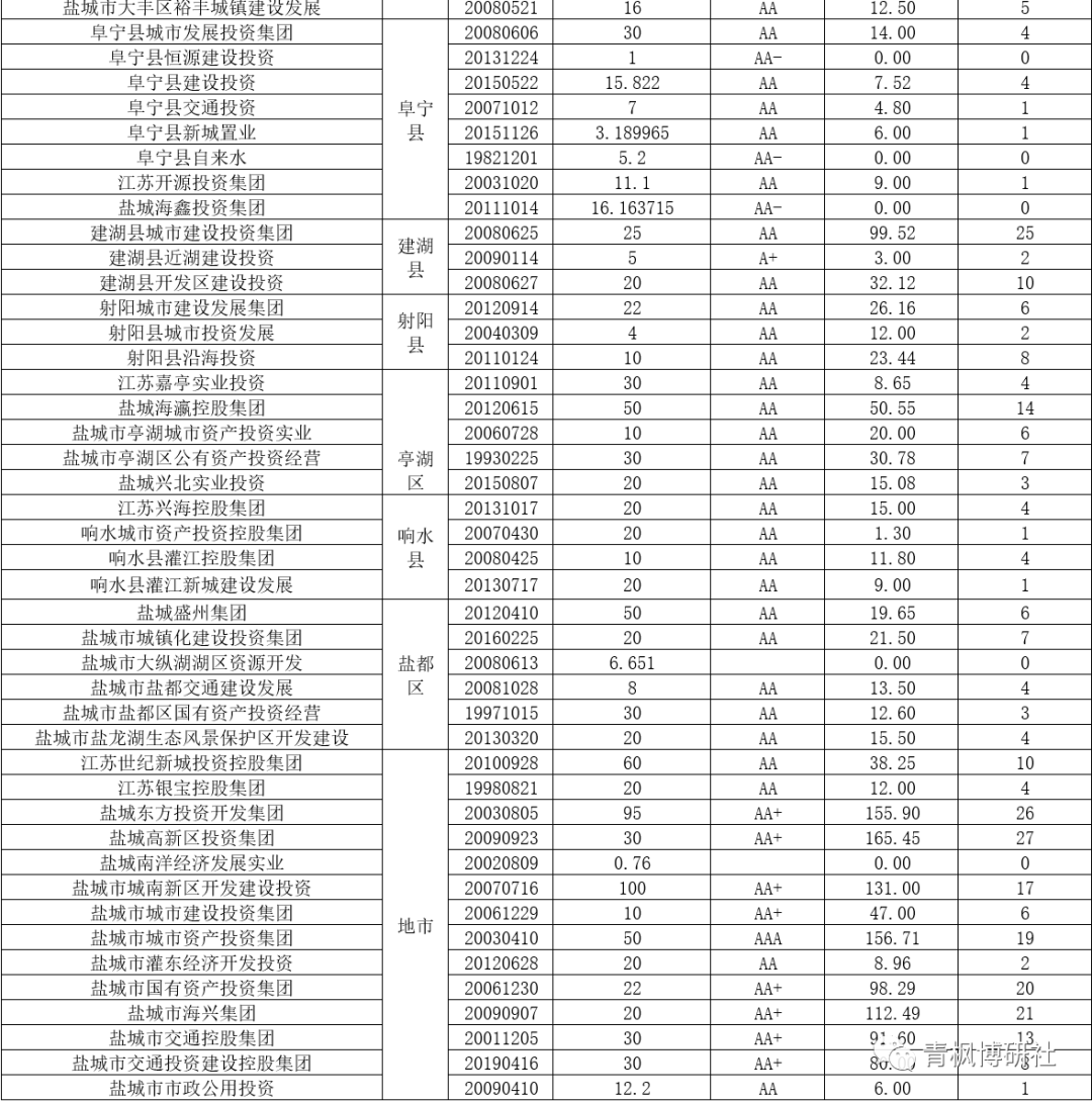 (三)目前江蘇鹽城地區(qū)有53家城投平臺,共有存量債券360只、債券余額為1789.04億元,要知道鹽城市一年的財政收入只有400多億元。特別是我們看到,江蘇鹽城大豐區(qū)目前有7只城投債券、余額合計為173.87億元,同樣表明大豐區(qū)的債務(wù)壓力較大。若考慮到鹽城地區(qū)的債務(wù)壓力本來就很多、市場認可度不高、融資成本明顯處于高位等因素,則基本可以判斷如果沒有金融體系的支持,或金融體系的支持不夠,意味著鹽城市及大豐區(qū)的債務(wù)壓力基本無解。
