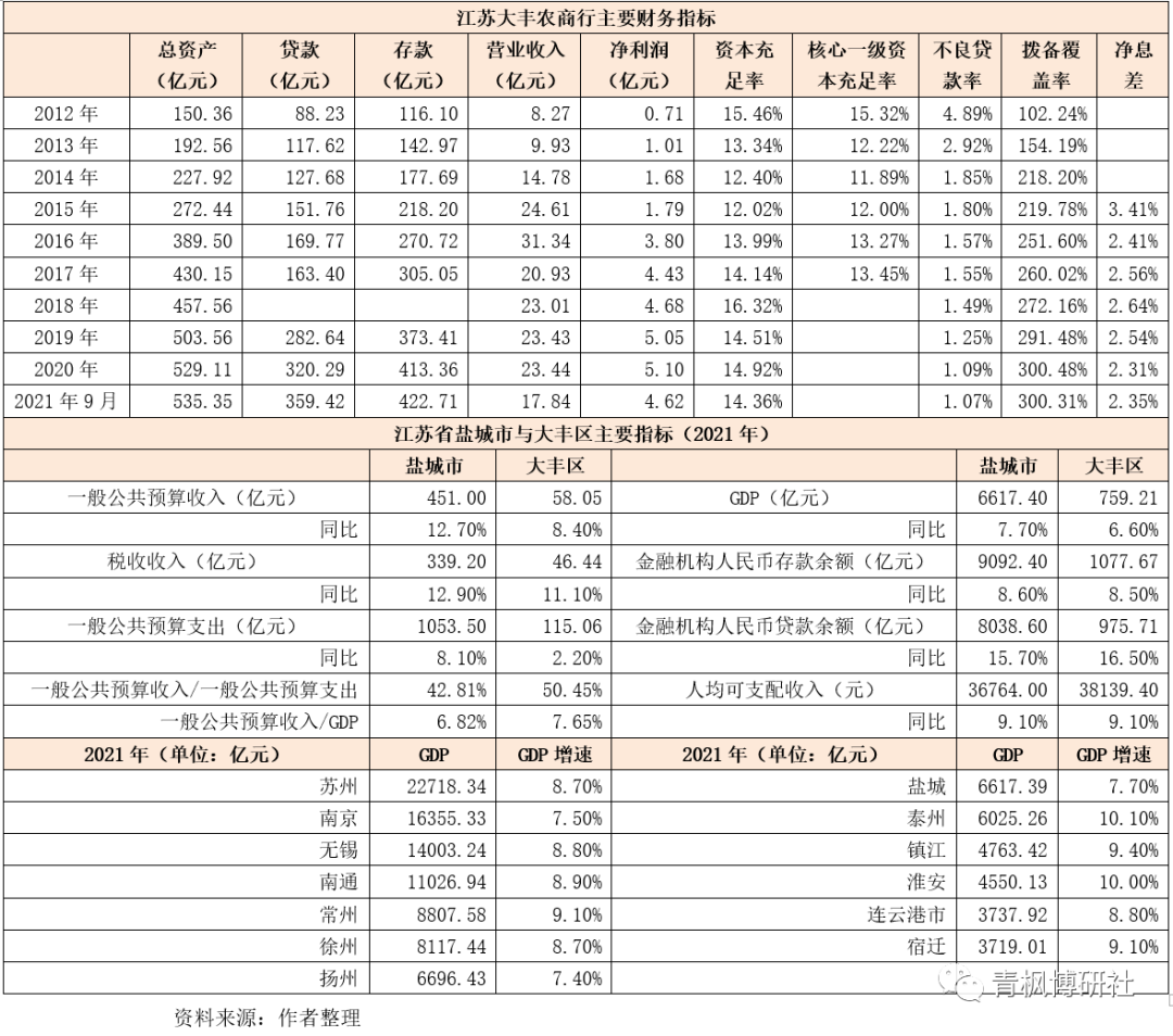 1、2012年以來,大豐農(nóng)商行的總資產(chǎn)由最初的150億元增至2021年9月底的535億元,這一體量明顯偏小,目前全部上市銀行(含港股和A股)中,總資產(chǎn)最低的瀘州銀行也有1300多億元。