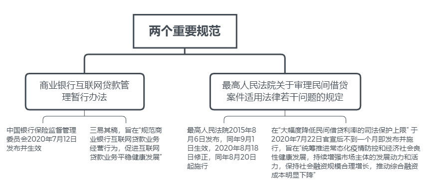 庚子夏秋之交,信貸行業(yè)接連迎來重要規(guī)范,一為《商業(yè)銀行互聯(lián)網(wǎng)貸款管理暫行辦法》(下稱“暫行辦法”),二為《最高人民法院關于修改<關于審理民間借貸案件適用法律若干問題的規(guī)定>的決定》(下稱“8.20司法解釋”)。