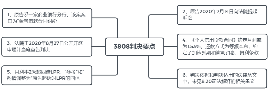 有觀點表示,8.20司法解釋第三十二條第二款規(guī)定:“借貸行為發(fā)生在2019年8月20日以前的,可參考原告起訴時一年期貸款市場報價利率四倍確定受保護的利率上限”,該款似乎可以作為3808案件作出“參照”判決的依據(jù)。