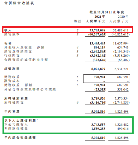 如果我們看歸屬凈利潤發(fā)現(xiàn)的問題更多,只有37.44億元,而2020年尚有43.26億元——也就是說,營收增長了那么多,毛利也增長了一些,但是歸屬凈利潤居然是下滑的。