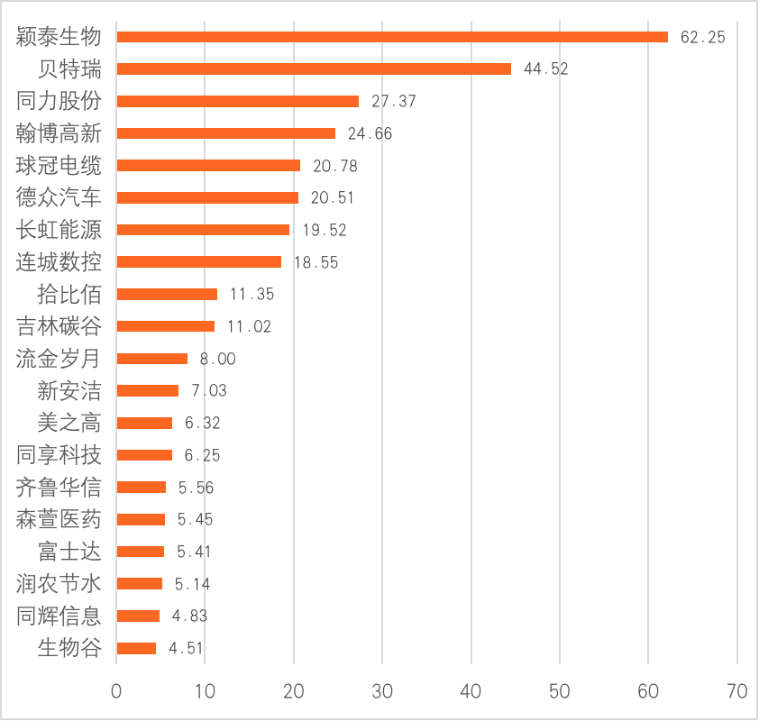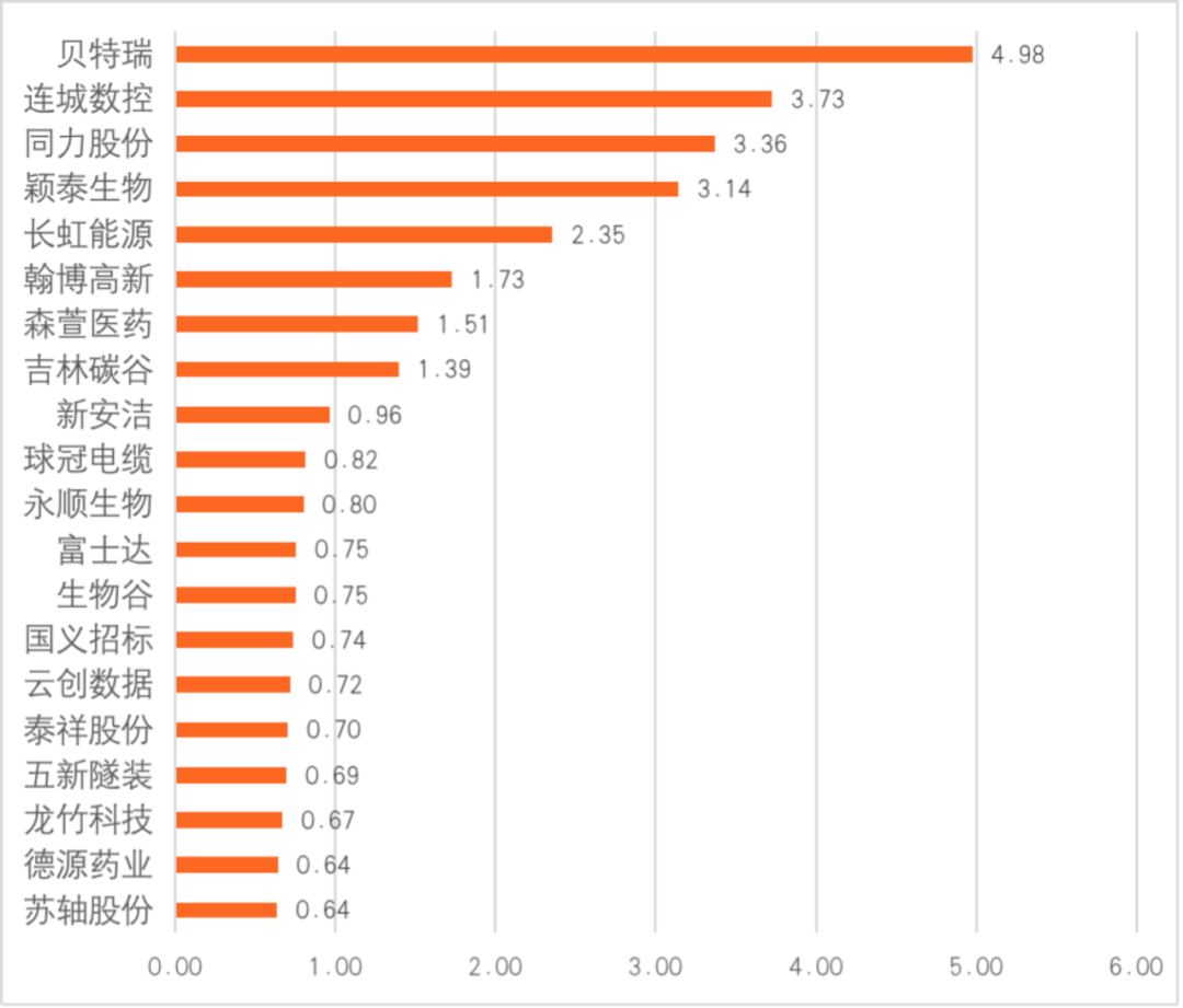 圖4 精選層2020年?duì)I業(yè)收入前20名企業(yè)及數(shù)據(jù)(億元)