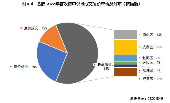 步入新的一年,重點城市首輪集中土拍熱度表現不一,但較去年第三輪土拍熱度相比,溢價率均有所上升。典型如合肥,受起拍價、配建等門檻降低的影響下,本輪集中土拍整體溢價率升至11.2%,15塊地觸及最高限價,成為一季度完成首輪集中土拍中溢價率最高的城市,較去年第三輪集中土拍溢價率增加6.7個百分點,市場熱度明顯上升。