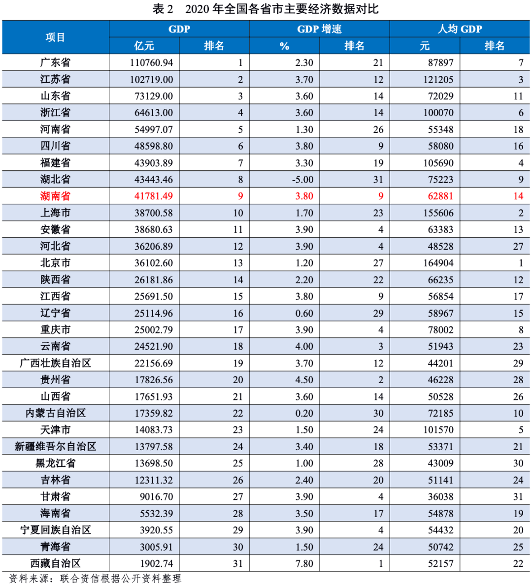 湖南省地處我國東南腹地,地理位置優越,經濟總量位于全國中等偏上水平,人均GDP處于全國中等水平。2018-2020年,湖南省經濟保持中高速增長,經濟發展態勢良好。2021年前三季度,隨著“新冠”疫情影響的逐步減弱以及固定資產投資的回暖,湖南省經濟水平大幅回升。