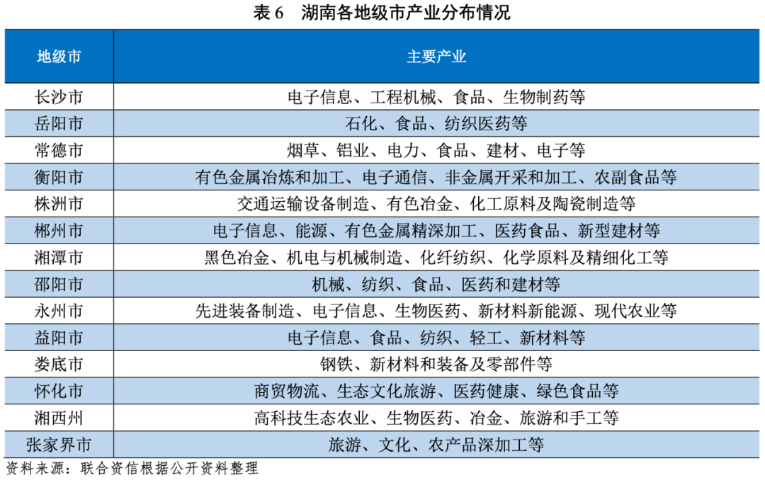 湖南省長株潭地區、湘南地區、湘北地區和湘西地區經濟實力分化程度較高,長株潭地區經濟實力明顯高于其他地區,湘西地區經濟實力較弱;長沙市作為湖南省省會城市,經濟實力及增速均處于全省領先地位,為全省唯一GDP規模超萬億的地級市。