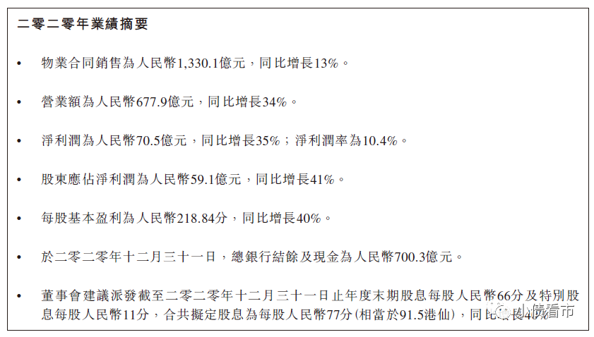 據業績公告顯示,2020年中國奧園實現營業收入677.9億元,同比增34%;實現歸屬股東凈利潤59.1億元,同比增41%。