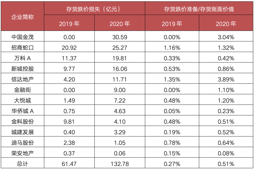 除了現房庫存積壓之外,市場分化,調控趨嚴,房企存貨跌價準備大幅增加。