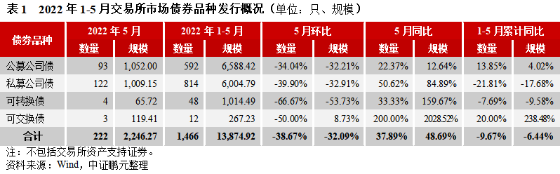1. 5月份交易所市場發行信用債券2,246.27億元,環比下降32%