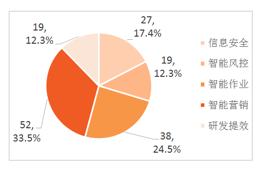 平安信托的專利主要包括發(fā)明和外觀設(shè)計兩部分。其中,發(fā)明專利155件,占到95.7%的比例,覆蓋智能營銷、智能風(fēng)控、智能作業(yè)、研發(fā)提效和信息安全等業(yè)務(wù)領(lǐng)域;外觀設(shè)計7件,主要投入在APP上。