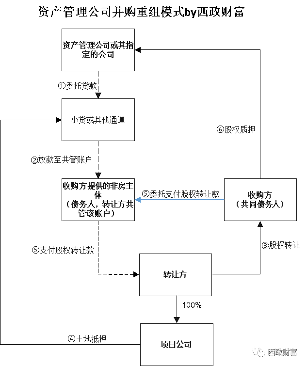 4.還款主體:非房主體作為借款人,收購方作為共同債務人對資產管理公司或其指定主體承擔還本付息義務。此外,后期還款亦可由項目公司承接借款主體的債務,項目公司代替借款主體履行還本付息義務。