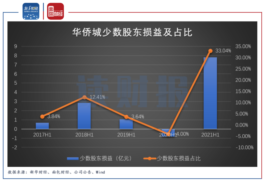 圖5:2017年H1至2021年H1華僑城少數股東損益及占比