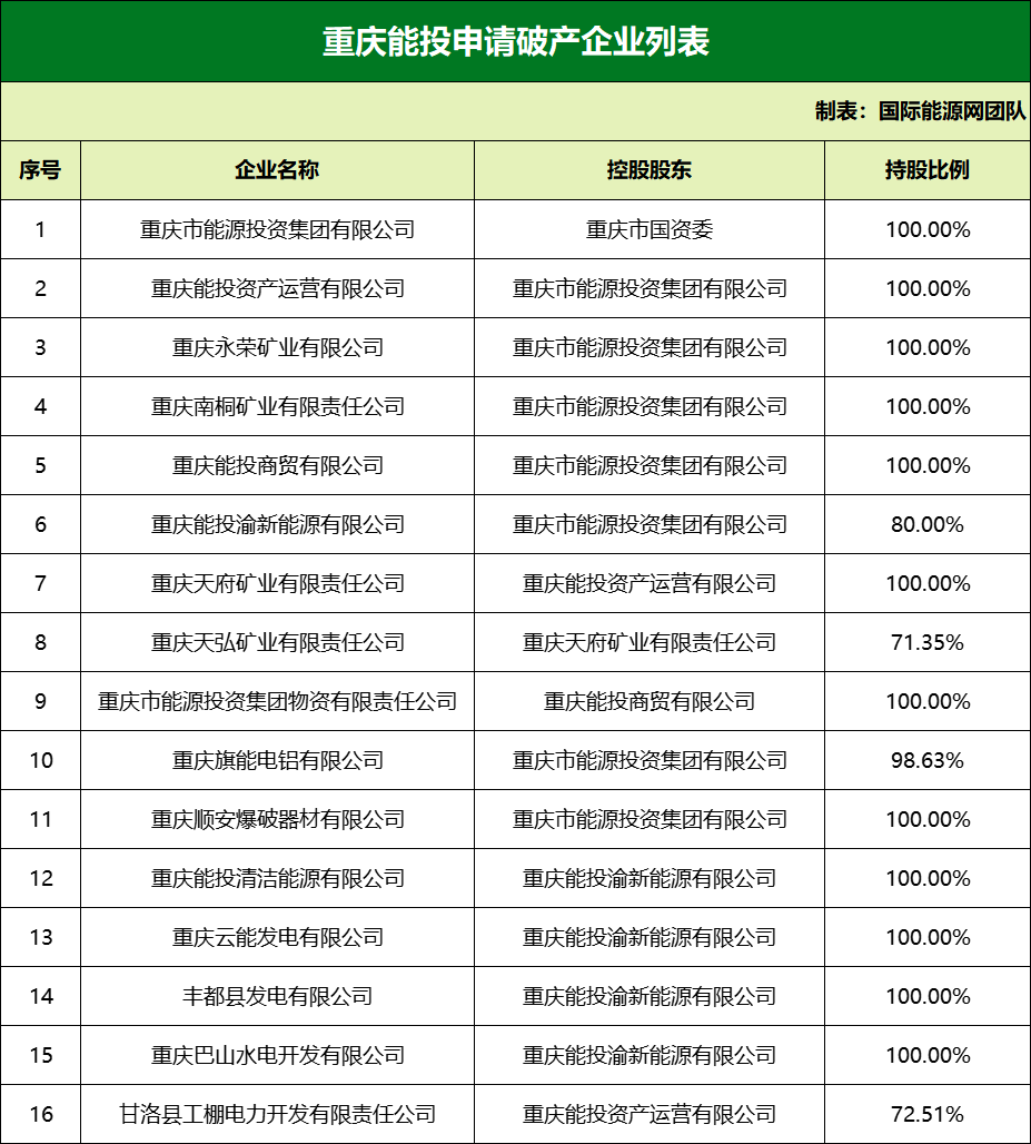 最近幾天, 重慶能源集團(tuán)等16家企業(yè)申請破產(chǎn)重整的消息刷屏了網(wǎng)絡(luò)。公開資料顯示,除重慶能投外,其他15家公司均為重慶能投的控股子公司。