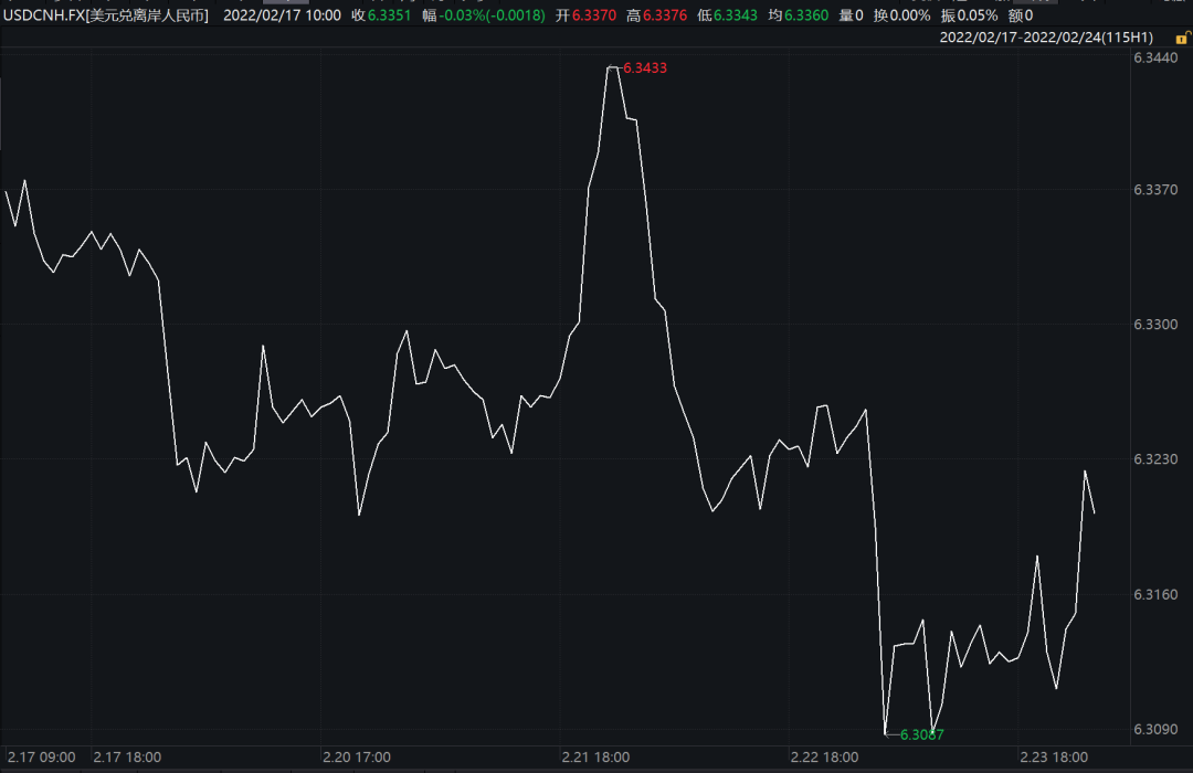 俄烏局勢雖然不斷升級,但未來走向仍具有諸多不確定性,有賴于各方之間的博弈,在此背景下,建議多關注美元、國債、黃金等避險資產,同時做多波動性。當然需要指出的是,在國外形勢日趨復雜的背景下,相對平靜的中國也在一定程度上支撐著人民幣資產成為避險資產之一。所以我們看到,近期人民幣不斷走強,離岸人民幣匯率甚至一度逼近6.30的高位,預計也應是地緣博弈的結果。
