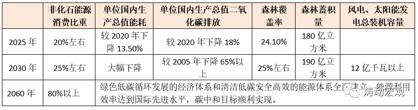 2021年10月24日發布的《關于完整準確全面貫徹新發展理念做好碳達峰碳中和工作的意見》明確了未來五年、十年與四十年的量化任務??梢钥闯?,2030年以前的非化石能源比重提升并不明顯,2030至2060年之間的三十年變化較大。
