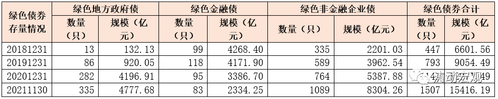 (二)綠色債券:存量1507只、規模合計15416.19億元