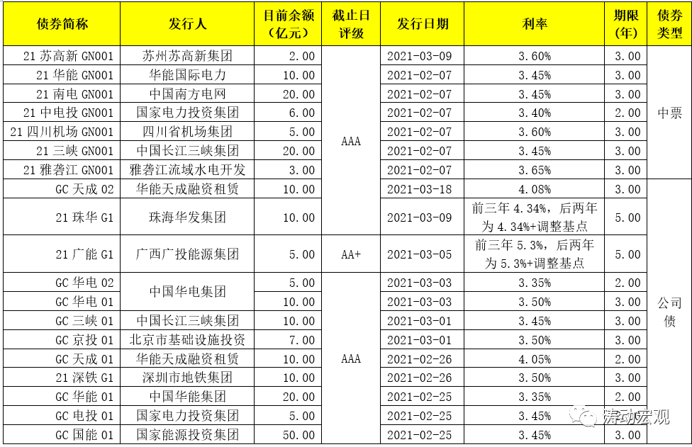 自2021年2月銀行間市場首次推出碳中和債推出以來,僅一個多月的時間碳中和債便發行了19只(規模合計達到218億元)。其中,銀行間中票7只(合計66億元)、交易所公司債12只(合計152億元)。可以看出,雖然銀行間市場率先推出,但交易所公司債卻上量更快。且從目前發行的主體來看,大多為能源類國企(評級多為AAA),發行利率多在3.30-4%之間。