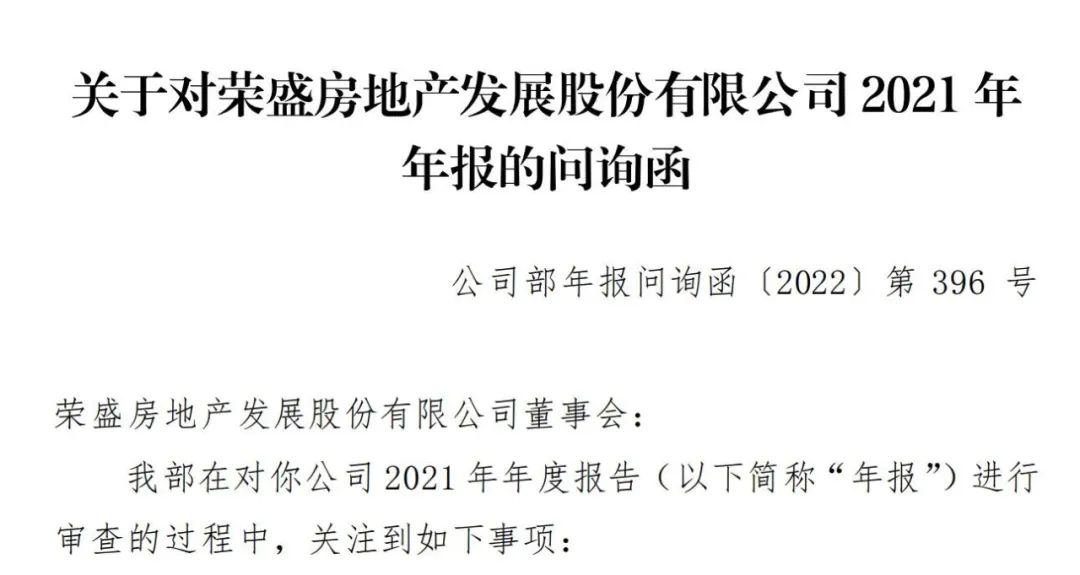 據(jù)公開(kāi)披露,2022年5月25日,深交所再次下發(fā)了“關(guān)于對(duì)榮盛房地產(chǎn)發(fā)展股份有限公司 2021 年年報(bào)的問(wèn)詢函”,一共八問(wèn)、問(wèn)問(wèn)扎心。