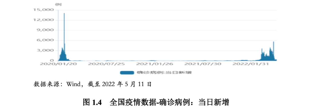 下圖展示了全國(不含港澳臺)新型冠狀病毒肺炎疫情現狀。分時間看,2020年初和2022年3月中旬以后當日新增確認病例數量居高,同時,2020年7月、2020年年底、2021年7月、2021年底當日新增也較多,反映出疫情多點散發、出現反復的情況。