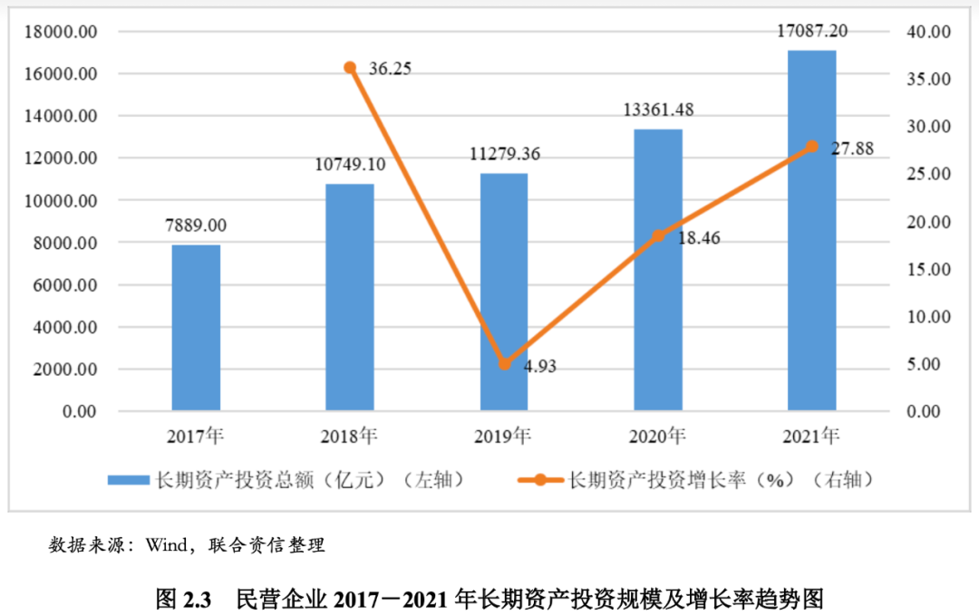 由于信用環境的惡化和信用能力的弱化,民營企業的正常經營受到較大的沖擊,反映在其自2018年以來,經營效率和盈利能力整體呈下降趨勢,且對未來預期減弱,在長期資產投資和研發支出方面出現較大的波動。鑒于數據的可得性,本報告選取我國滬深交易所上市民企以及發債民企作為樣本,并剔除了2017-2021年間數據不全的樣本,共獲得2740個有效民企樣本,本節均基于該樣本群進行分析。