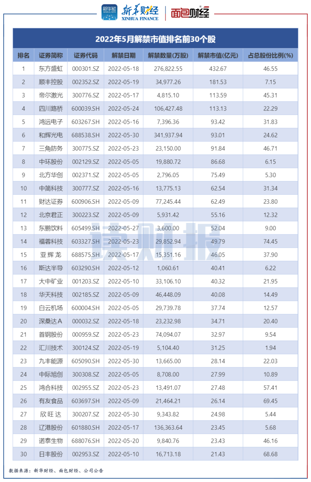 數據顯示,5月滬深兩市共計249家限售股解禁。