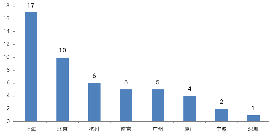 聚焦至城市分布情況,二季度以來成交的TOP50高價地均位于京滬廣深、廈寧杭甬八個一線和新一線城市。其中,上海高價地數量遙遙領先,多達17幅,其次是北京,也達到了10幅,杭州、南京、廣州、廈門四城也有4幅及以上,寧波和深圳高價地數量相對較少,僅有1、2幅。
