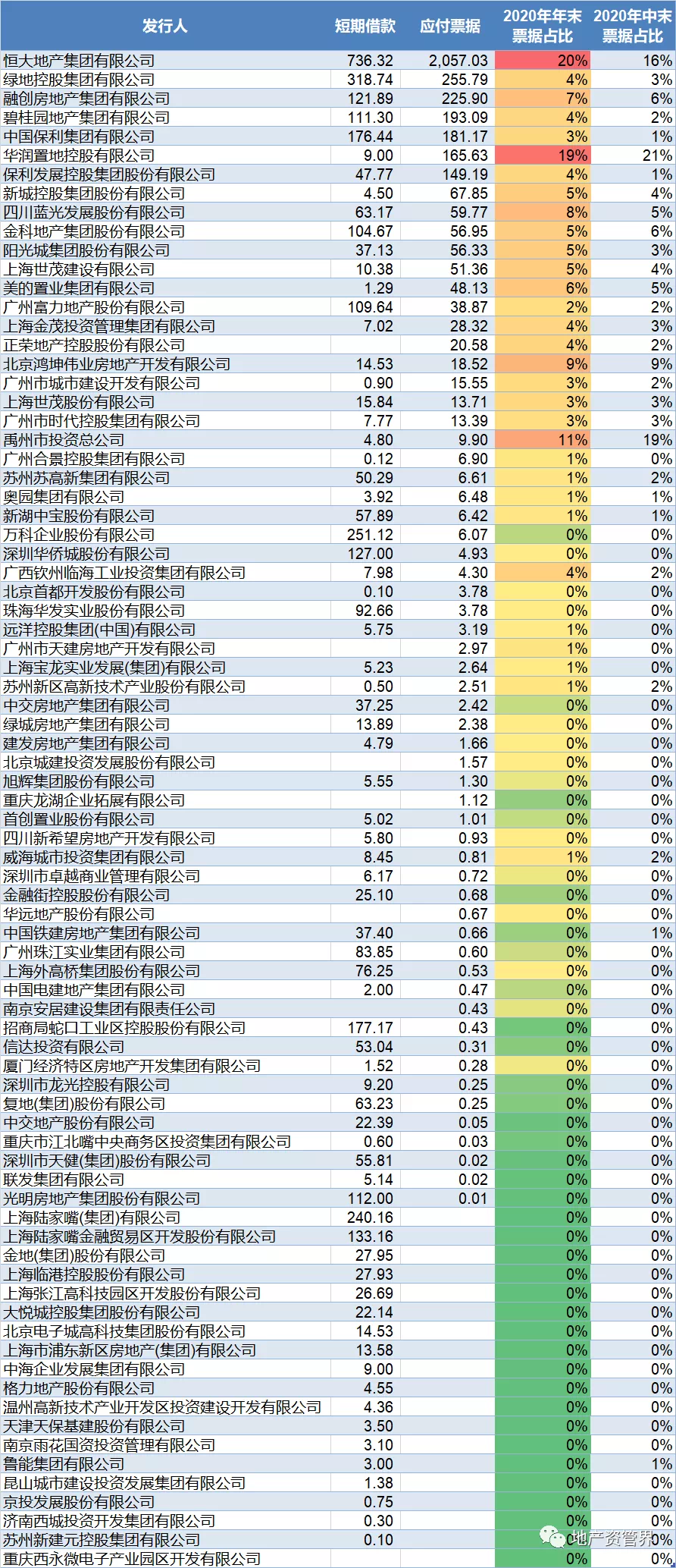 這其中以恒大的商票發行規模最高,達到了2052億,而30億以上商票存續的房企達到17家。