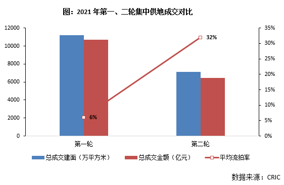 房地產市場“冷”主要體現之一在于房企流動性普遍緊張,土地投資持續下行。就22城集中供地來看,由于調控政策密集,房企現金流深陷困局,導致第一輪與第二、三輪土拍局面大相徑庭。根據克而瑞監測,第二輪集中供地成交建面、成交金額都較第一輪顯著減少,且平均流拍率超過三成。目前深圳、南京、蘇州等部分城市第三輪集中供地也已經落下帷幕,土拍熱度仍難有起色。