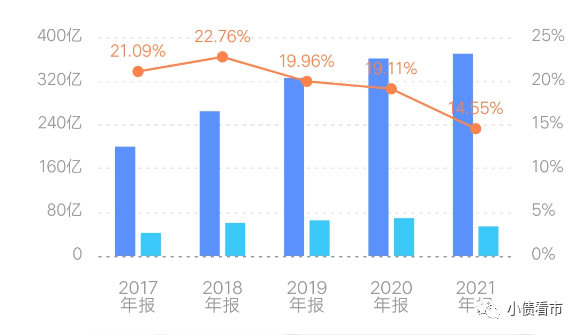 2018年至2021年,正榮地產(chǎn)少數(shù)股東權(quán)益分別為79.42億、132.24億、166.08億以及201.87億元占比過半,但少數(shù)股東損益卻變化不大占比僅兩成,少股股東權(quán)益在凈利潤中的占比嚴(yán)重不匹配。