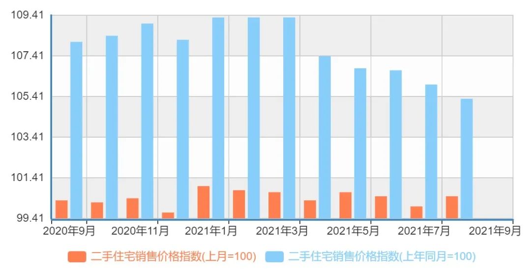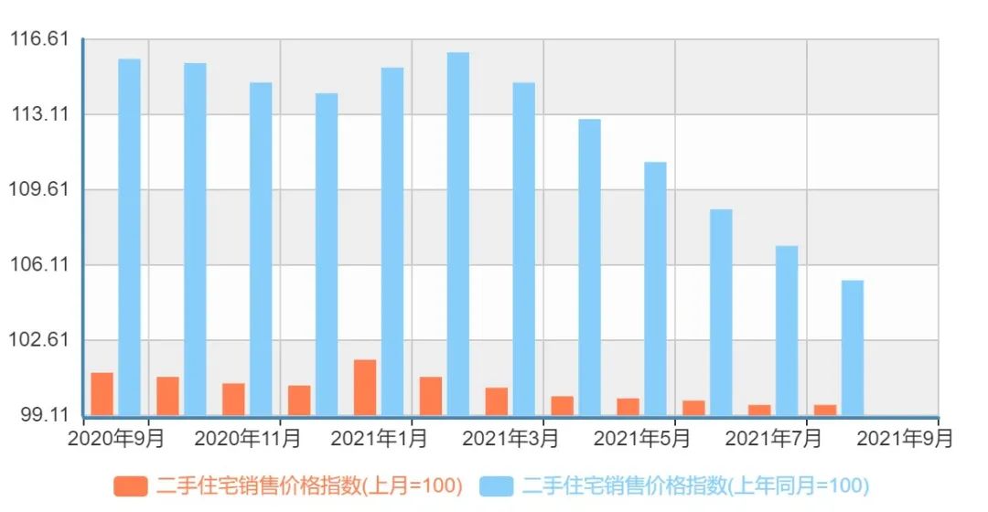 看看成都,如上圖,情況比深圳好一些。但去年相同時間段內(nèi),成都的二手房住宅銷售價格漲幅也基本在8%左右,不低了。尤其今年上半年漲幅似乎還比深圳更猛。