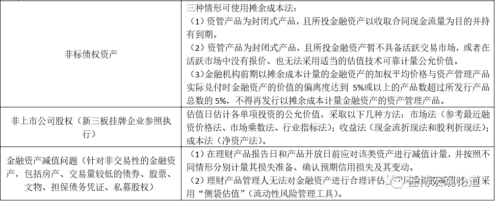 雖然中基協沒有特別提及非標債權資產的估值,但參照資管新規,中基協對非標債權資產的估值基本是默認的。即三種情況下可使用攤余成本法進行估值,這也是銀行理財的一個明顯優勢。