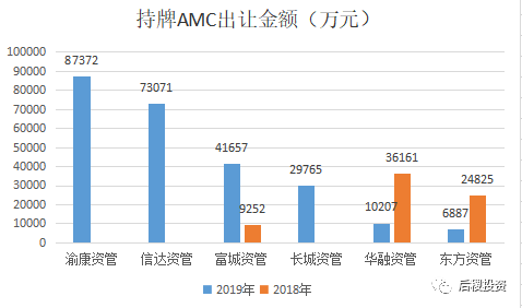 從上圖看,渝康資管表現(xiàn)亮眼,受讓金額遙遙領(lǐng)先,其余5家持牌AMC受讓規(guī)模相差不大。